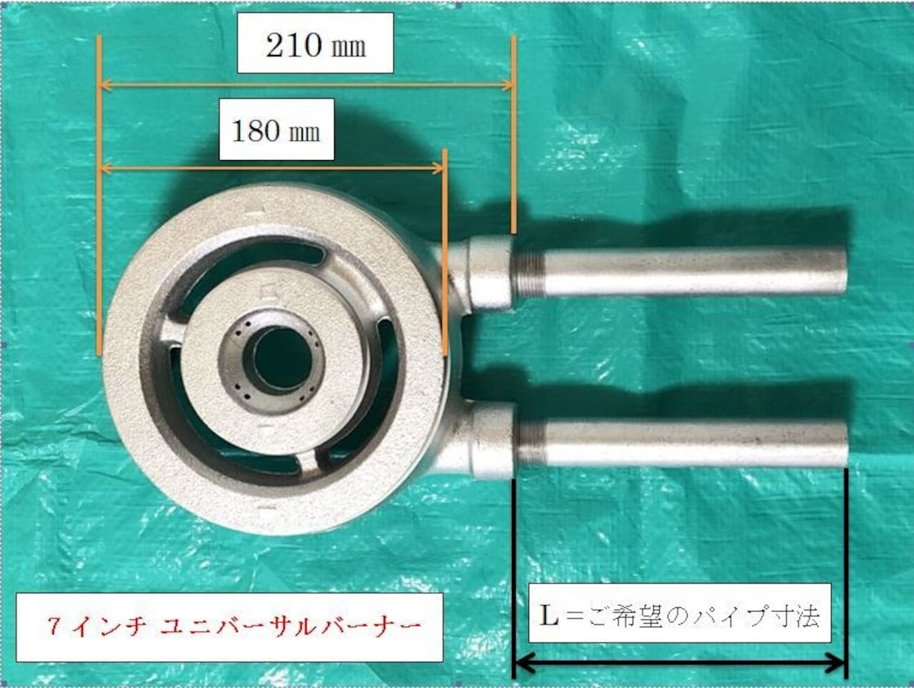【この商品は、2個セットでの販売です】 7インチユニバーサルバーナー(混合管パイプ付) 18㎝Φ ★ パイプ寸法オーダー料金込みの値段です!★ 鋳鉄製バーナー 業務用厨房器具 ガスバーナー ガスレンジバーナー #ガスコンロ #交換用 #調整法説明付き